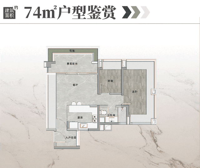 建面74平三房,三开间,原本是2房设计,可以改做三房。