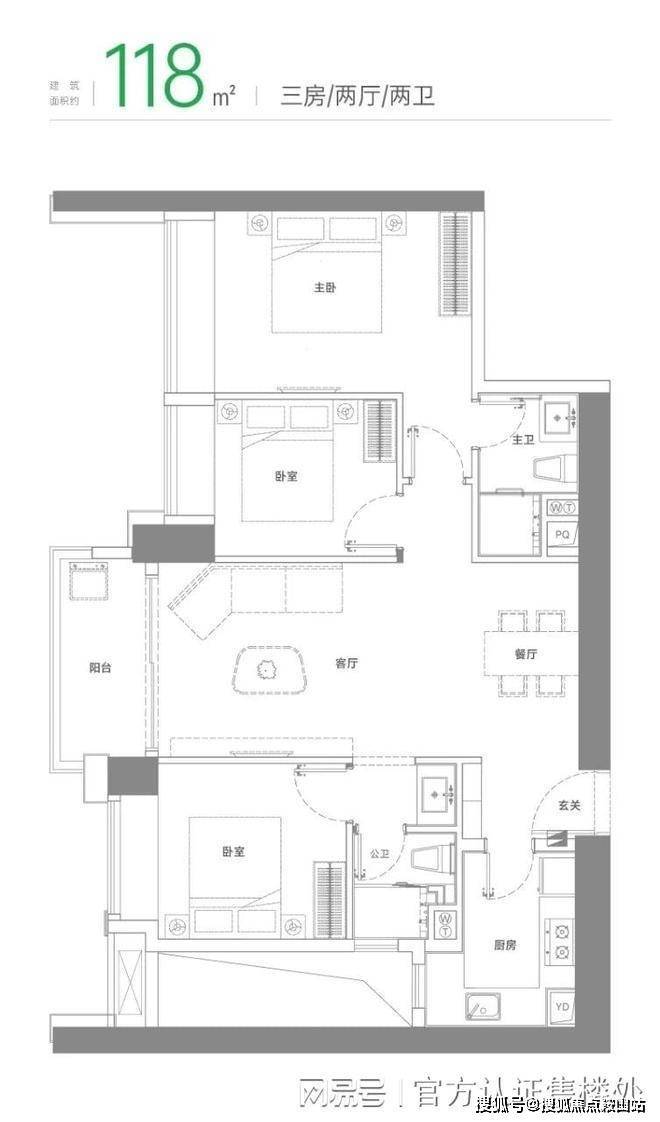 110㎡3房2卫:320套/118㎡3房2卫:64套