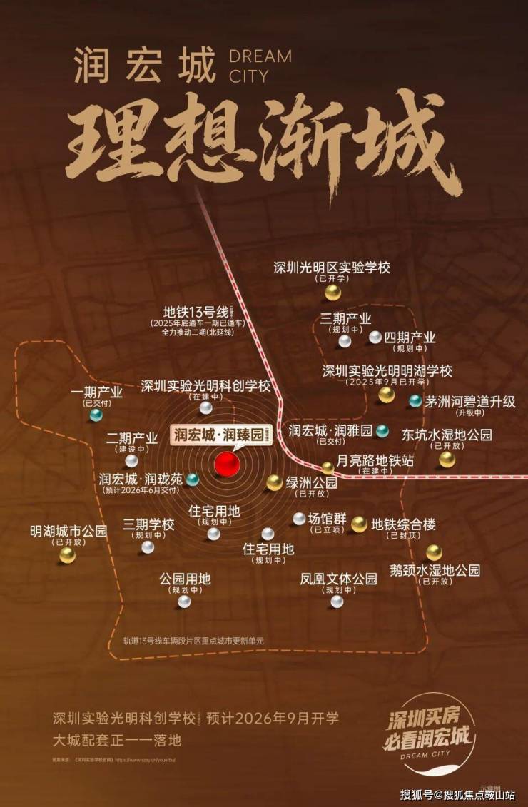当轨道的轰鸣唤醒城市的脉络,当大城的兑现勾勒生活的蓝图,深圳光明正迎来属于润宏城的“高光”时刻。近日,深圳地铁13号线一期北段正式开通,二期北延段全力推进,这条被誉为“科创干线”“南北通勤动脉”的黄金线路,即将重塑湾区通勤格局。而与13号线月亮路站(在建)直线距离约600米的润宏城,正以320万㎡大城体量,兑现 “轨道改变生活,大城兑现美好”的核心承诺,让光明与南山的半小时生活圈成为现实。