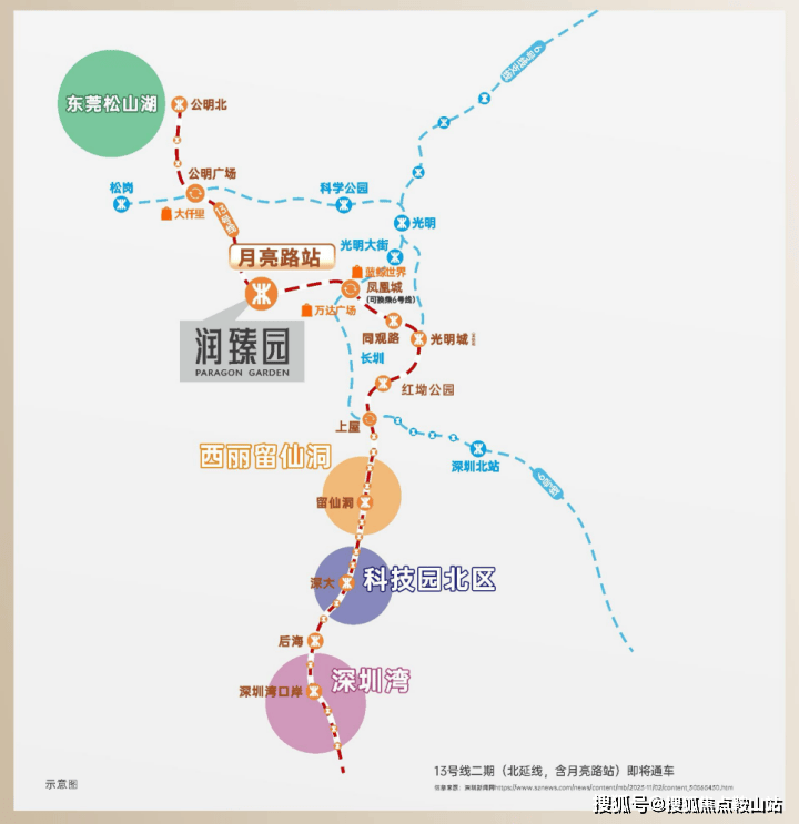 对于润宏城业主而言,高效通勤直接放大区域价值,轨道红利触手可及。从月亮路站出发,9站直达深圳湾总部基地等核心就业区,1站换乘6号线通达福田中心,真正融入半小时湾区生活圈。更值得期待的是,13号线二期北延段已完成全线热滑试验,进入动车调试阶段,预计2026年具备通车条件。届时,从润宏城出发10站直达留仙洞总部基地,全程仅需约30分钟。“住在光明,工作在南山”的理想生活将全面落地。