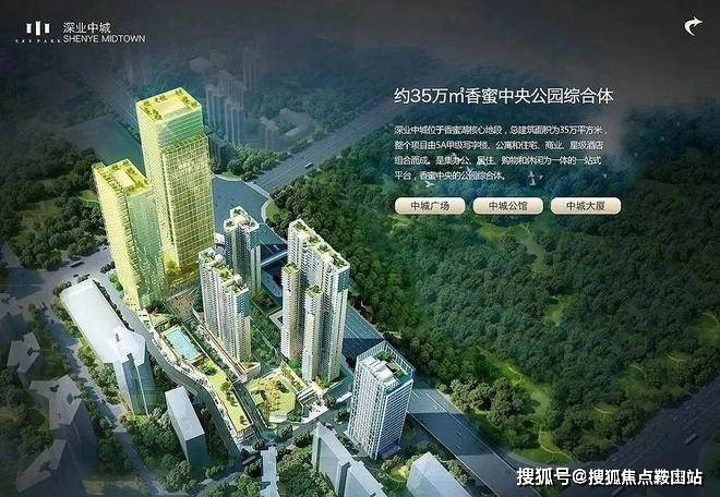 深业中城售楼处电话:400-166-9557,深业中城是深业集团集35年房地产开发经验,在城市中心区打造的又一扛鼎力作——香蜜中央•城市顶端•公园综合体。项目位于香蜜湖豪宅板块,红荔西路与农园路交汇处东南侧,北侧拥揽43万平米的香蜜公园,西侧是东海城市广场,南侧为东海花园高尚住宅区和车公庙商务区,东侧为香荔绿洲花园。项目占地约3.9万㎡,总建筑面积约36万㎡,容积率约6.79,由住宅、办公、公寓、商业和酒店组成的高端城市公园综合体,项目建成后将成为香蜜湖板块的城市标杆综合体物业。