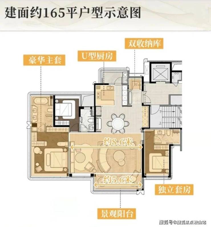 从项目板楼设计和165平户型图来看,它都是目前新中轴市场上最稀缺的一类产品。