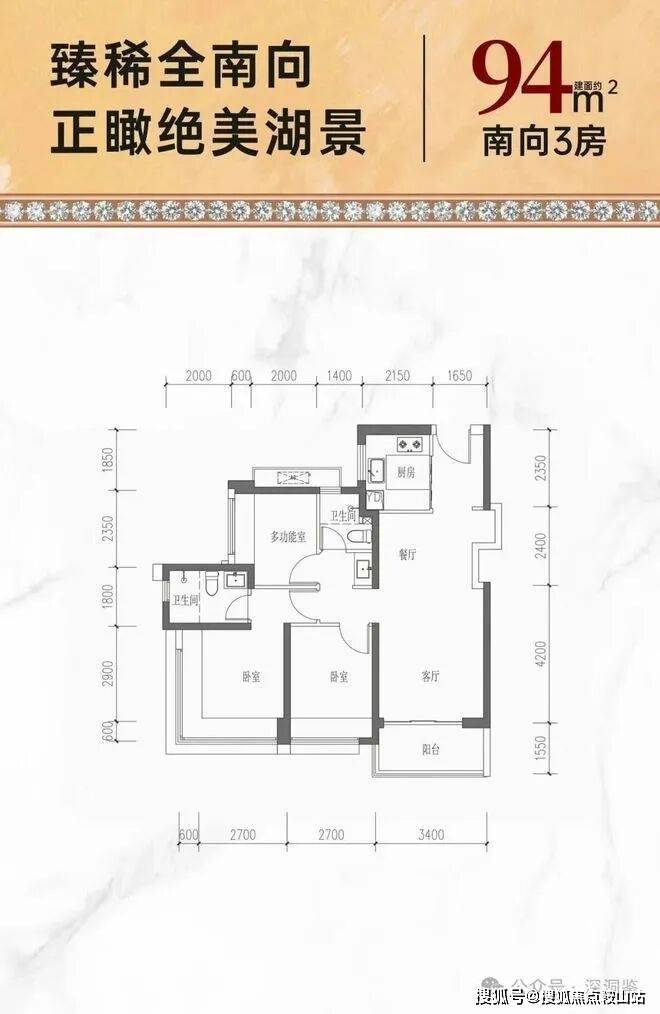约94㎡南向性价三房,折后单价约4.52-4.79万/㎡,折后总价约427-452万