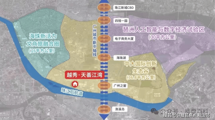 项目位于海珠区广州地铁2号线和广佛线的南洲 站交汇处附近;地处粤港澳大湾区中轴,正构建“一区一谷一湾”( 东部建设琶洲试验区、中部建设中大国际创新生态谷、西部建设海珠新活力文商旅融合圈)创新发展新格局的海珠创新湾。