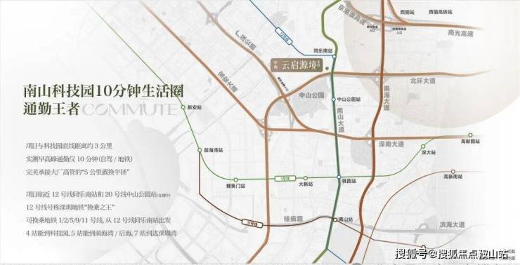 南山科技园是深圳的“创新心脏”与“经济脊梁”;南头古城是深圳当之无愧的文化瑰宝与历史明珠;中山公园是南山区的“绿色文化客厅”;北环大道是深圳东西向主要城市干道,也是深圳的产业发展交通轴。