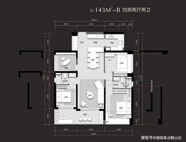2、建面约143㎡全能四房,将空间感拉到极致