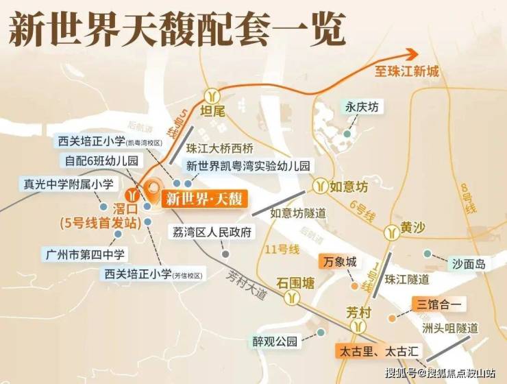 项目位于滘口板块,临近白鹅潭CBD,荔湾区目前在建的华润万象城商业,滨水街区太古里、太古汇,三馆合一都在附近,旁边就是5号线的首发站,去往珠江新城、金融城等地都无需换乘,相对来说这一片居住设施还是比较成熟的,还是豪华交标!