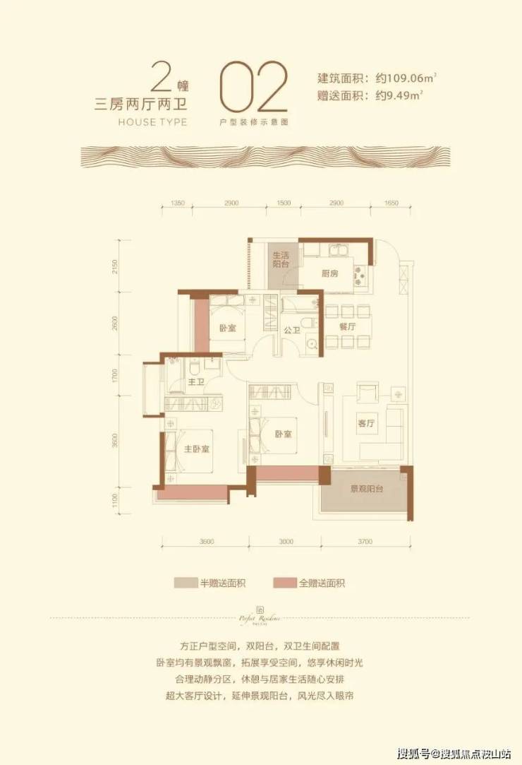 富逸城臻誉 02户型,3室2厅2卫,109.06㎡(建筑)