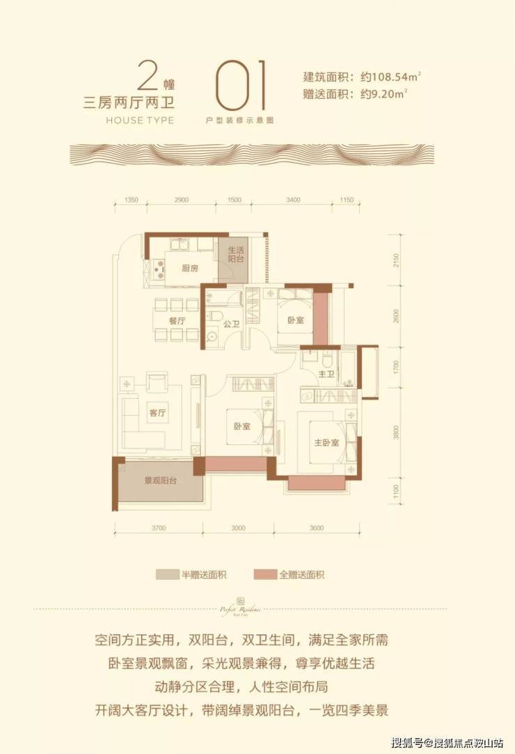 富逸城臻誉 01户型,3室2厅2卫,108.54㎡(建筑)