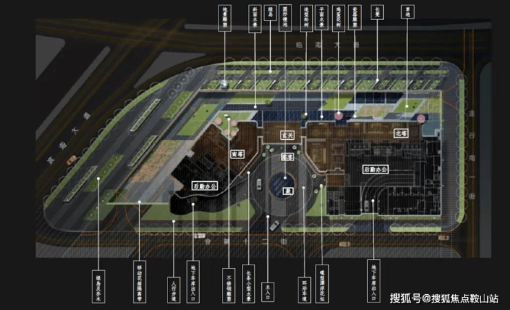 本项目的设计亦着重在室外环境中,丰富的特色景观和广场遍布整个项目场地。随着被景观覆盖的裙房,首层被抬高升起在其之下产生步行环境,并在特定位置和街道层面连接,形成一个舒适并高效的步行系统。绿色屋面、水景池、花园空间和景观行人广场提供更贴心的设置和优质的室外环境。