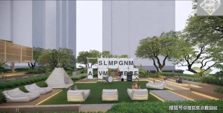 【抬高式檐上浮岛花园露台】:约1000㎡,位于商业街区顶层,业主私享花园露台,提供丰富空间活动区域,是邻里交流娱乐的理想场所。