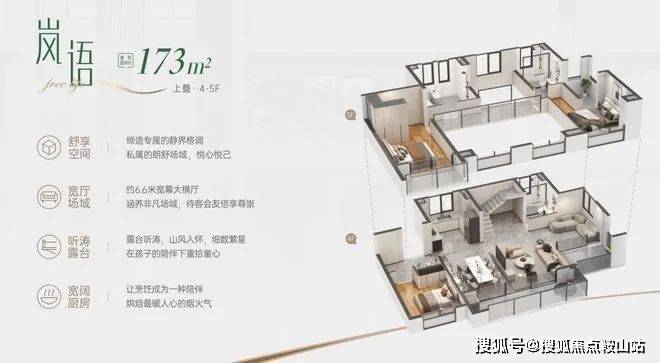 上叠173平,,使用率200%,一共两层,客厅去到6.6米,严格意义上来说,更像是大面宽和大层高的复式产品。