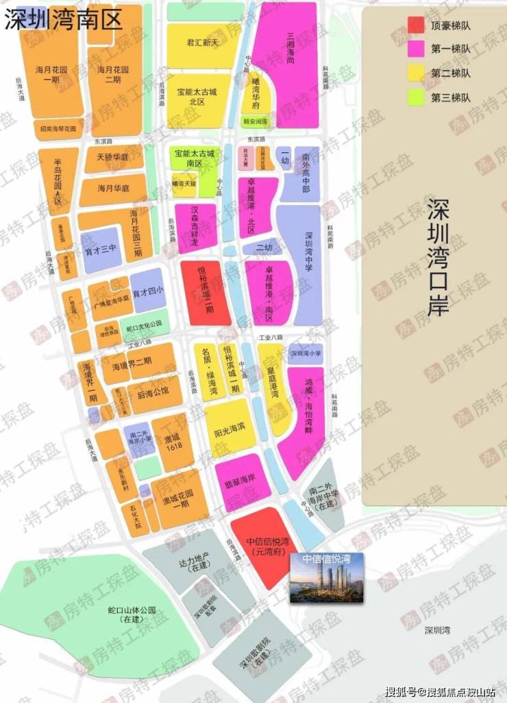 深圳湾片区主要是指后海滨路以东,海滨大道以南,沙河西路以西所合围起来的区域,分为后海金融商务区、体育中心区、住宅区、口岸四个大区域。