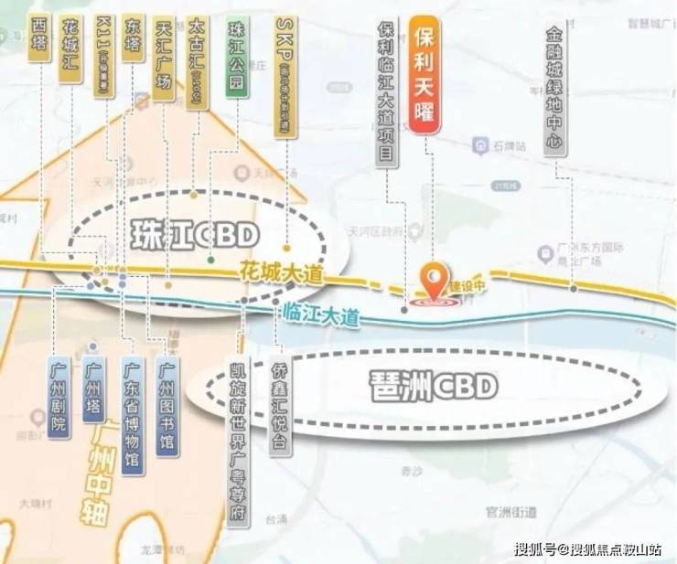 地块位于规划花城大道南侧,紧邻华南快速干线、黄埔大道中、临江大道及科韵路等主要交通干道,这也是天河比较难得的靠近地铁站的盘