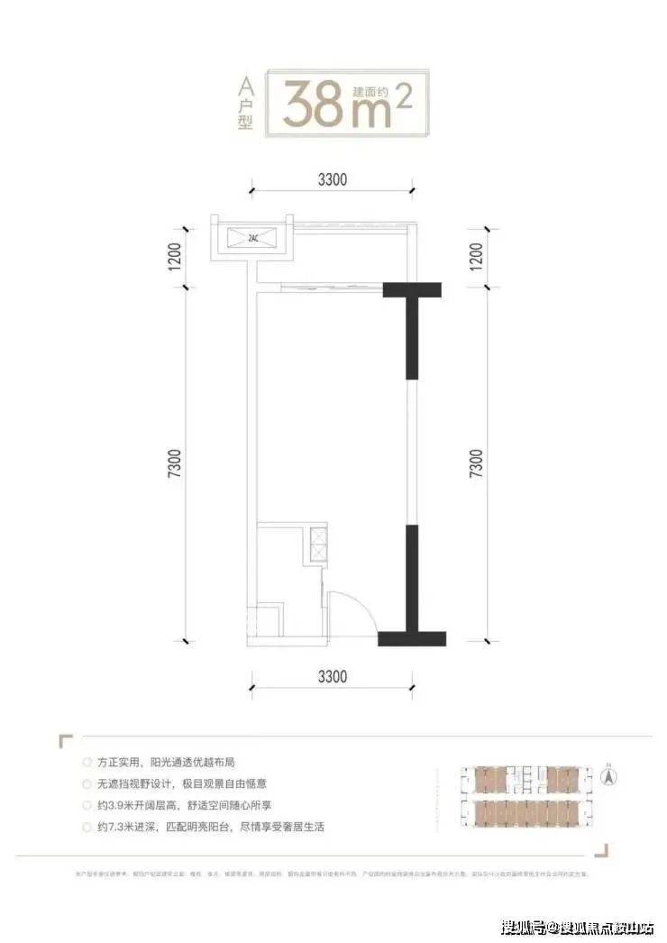 建面约38/48㎡智美人居,约3.9米优越层高,户型方正通透,户户独立阳台,通燃气到阳台;配备4部电梯高速往来,定制打造城市精英人士生活空间。