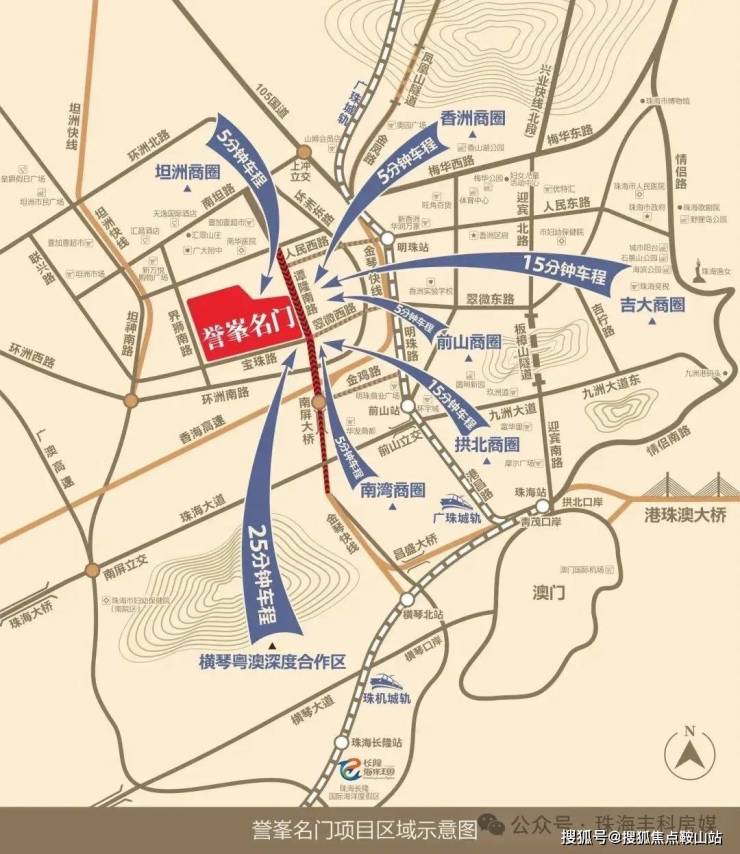 纵横大湾区生活圈誉峯名门,雄踞珠坦城央交汇处,坐拥香洲生活圈,随着枢纽工程造贝立交的不断推进,未来将连通金琴快线、港珠澳大桥、深中通道,纵横湾区各大城市,香海路将成为珠海主城连通西部中心城区的交通大动脉,誉峯格局,遇鉴未来①一大城轨站:广珠城轨明珠站②两条快速线:金琴快线、香海高速③三条主干道:人民西路、翠微西路、潭隆南路④四大商业圈:南湾、前山、香洲、坦洲商圈