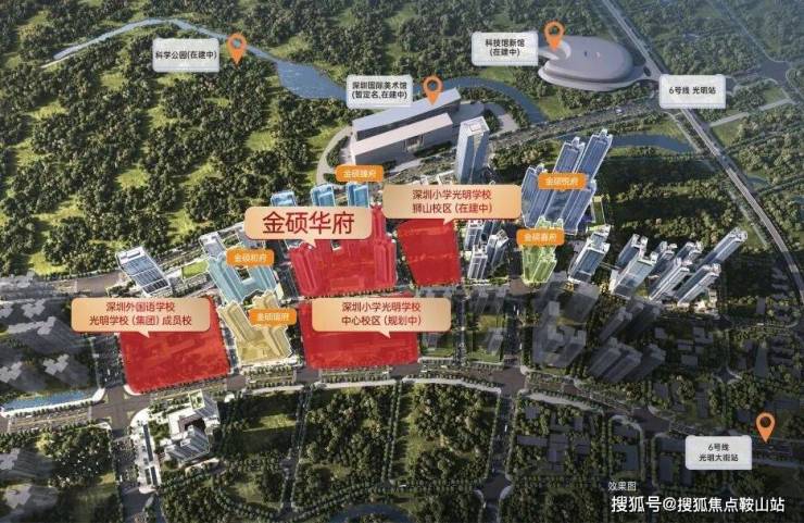 满京华·金硕和府位于科学公园核心C位住宅区,北侧毗邻光明科学公园(在建)、深圳国际美术馆(在建),距离6号线光明站步行约800米。,总规划分为7期,综合体量近百万平,备案指导价47300。