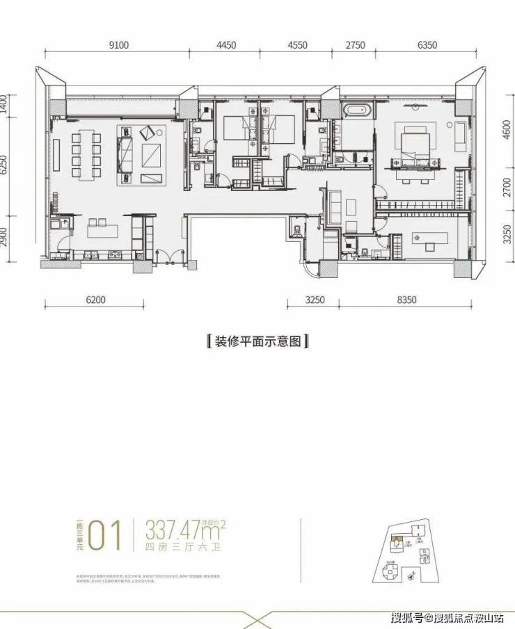 【建面约337平4房全套房+1工人房3厅6卫】