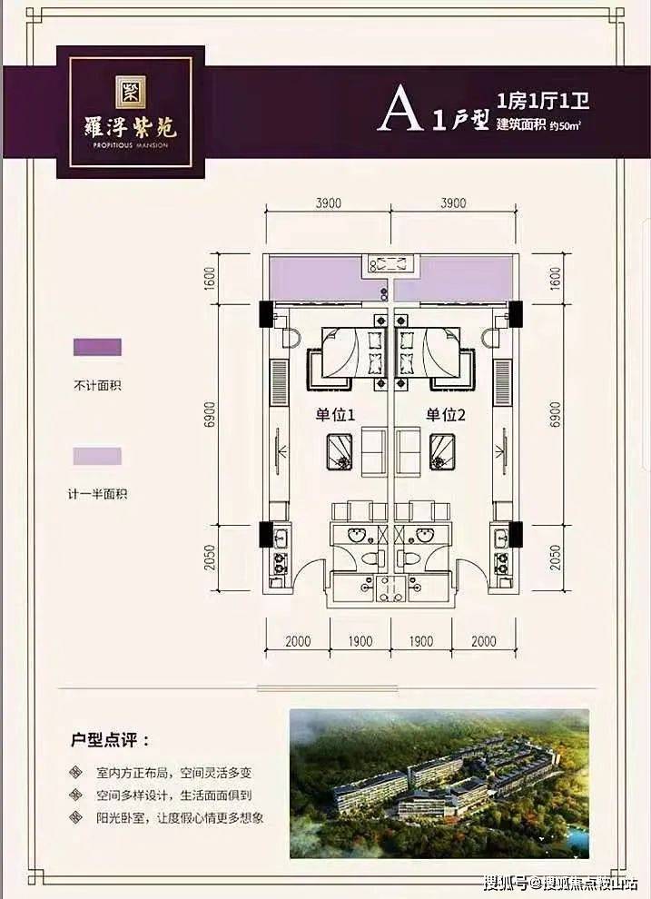 建筑面积约50㎡,总价36万起,保底1800租金+20%利润分红,收租约6万/年