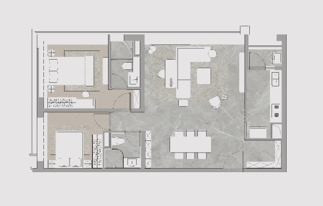 产品面积:B地块公寓为86-225㎡平层户型,C地块公寓为105-141㎡平层户型,E地块则是425㎡纯粹的大平层产品,F地块公寓则为171-225㎡平层户型