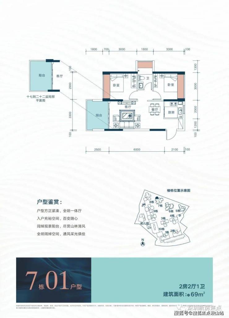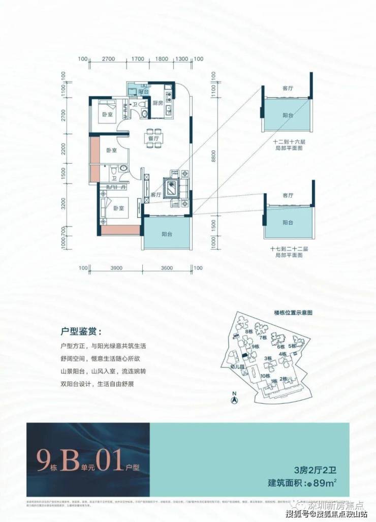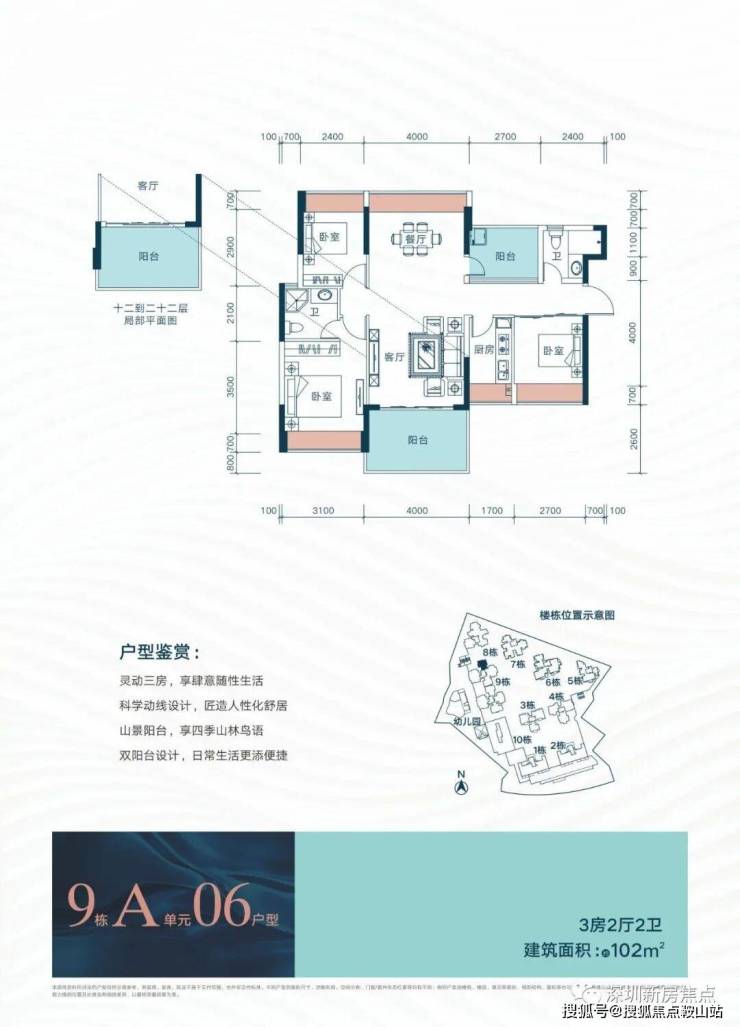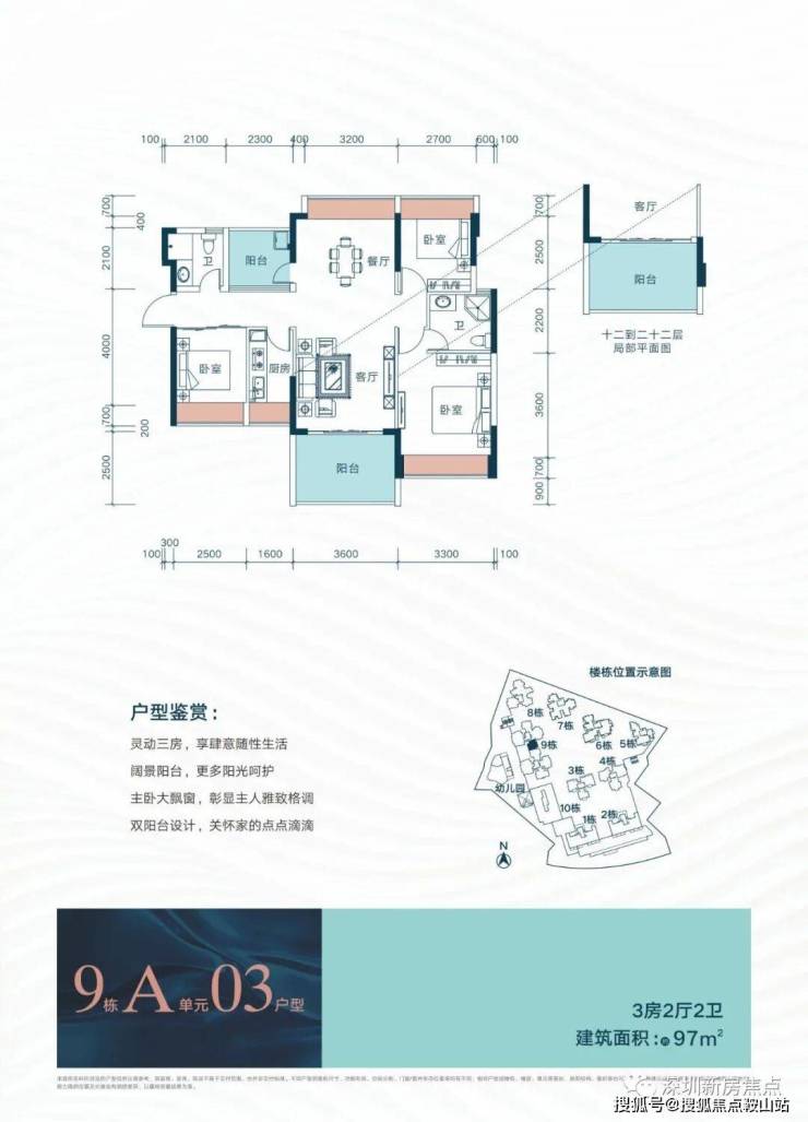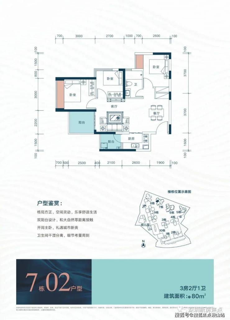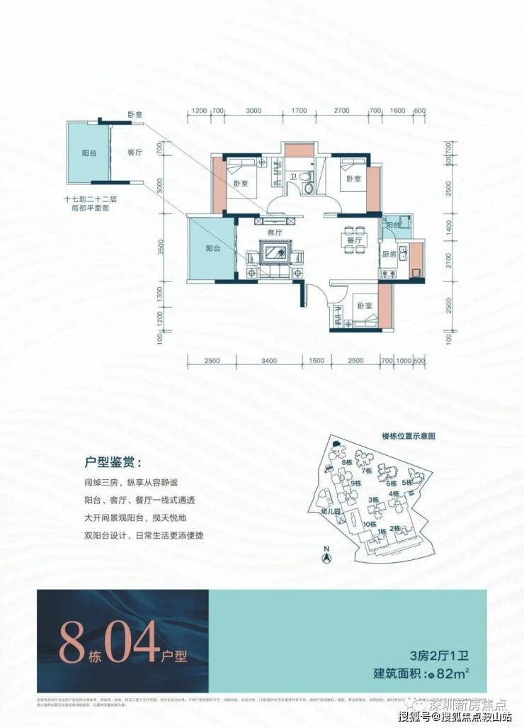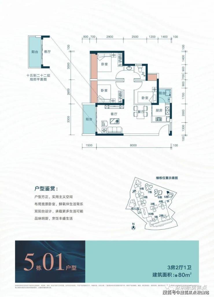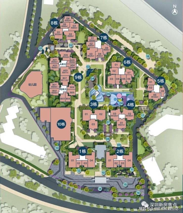 项目规划了10栋高层建筑,点式排布,其中1栋、2栋楼为商务公寓,均为11层,3、4、5、6、7、8、9栋为住宅,15-22层,10栋为商业,9层。另外,还规划了1栋6班制幼儿园。
