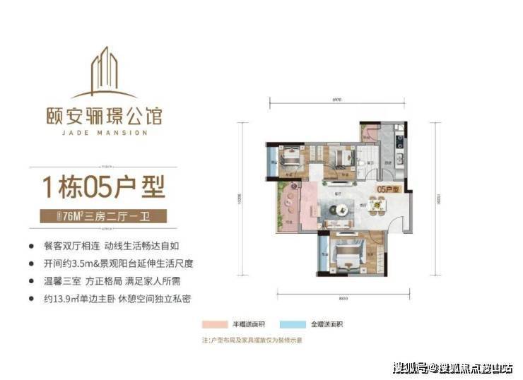 在颐安骊璟公馆,最小户型建筑面积约76㎡就能做到三房,是石岐总部为数不多的小面积三房,方正灵动,实用率高。