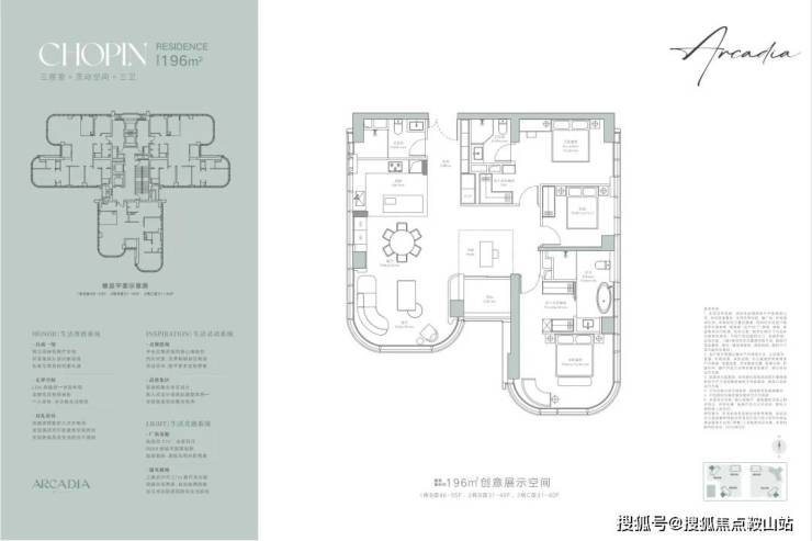 建面约196平户型是「三居室+灵动空间+三卫」的奢阔设计,让生活更加从容且惬意,匹配对生活有追求的商务精英或高净值人群的居住需求。