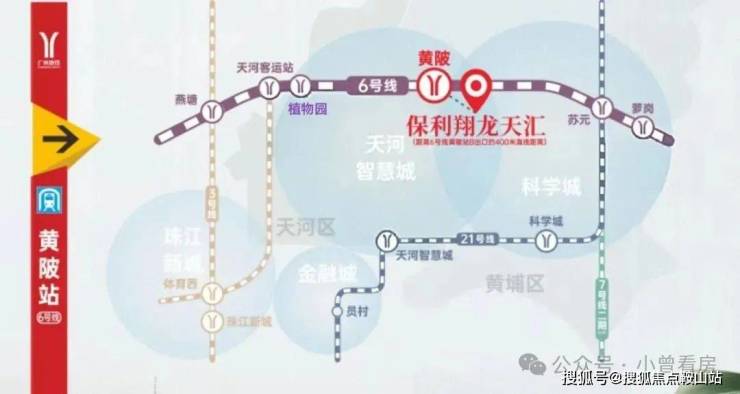 地铁交通:项目距离约400米到地铁6号线黄陂站,1站天河高塘石站,3站换乘21号线,6站换成3号线,通达广州各区。