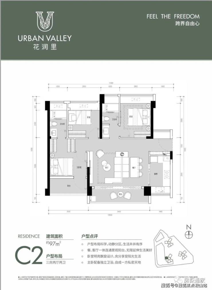 ⭐99㎡三房总价:300万起