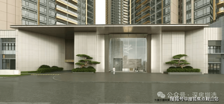 一重:堂——约50m宽小区主入口,酒店标准