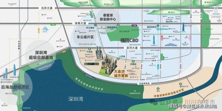 超300亿大金沙规划,唯一接驳福田CBD和深圳湾的滨海新城,北邻香蜜湖新金融中心和车公庙2049未来之城,南接河套深港科创合作区,以政府资源的倾斜和前瞻的规划,成为最具生长力片区,主推福田CAZ转型。