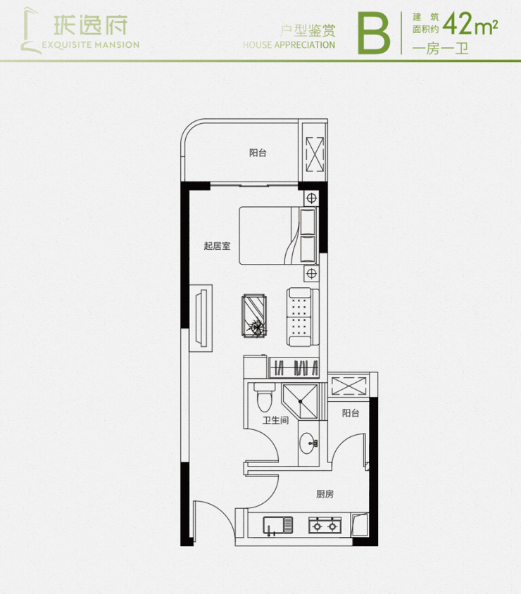◎建面约42㎡1房户型: