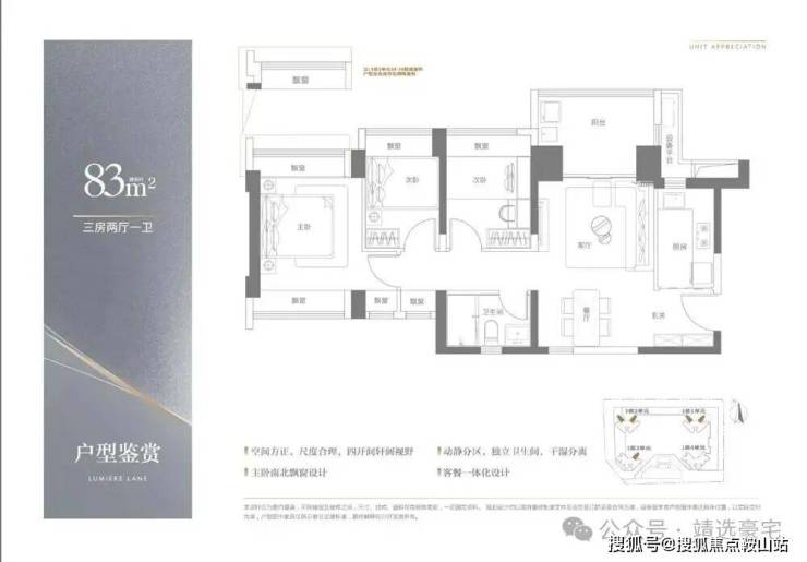 产品:建面约83-113㎡3-4房品智美学住宅,多面宽朝阳,揽清风入怀;