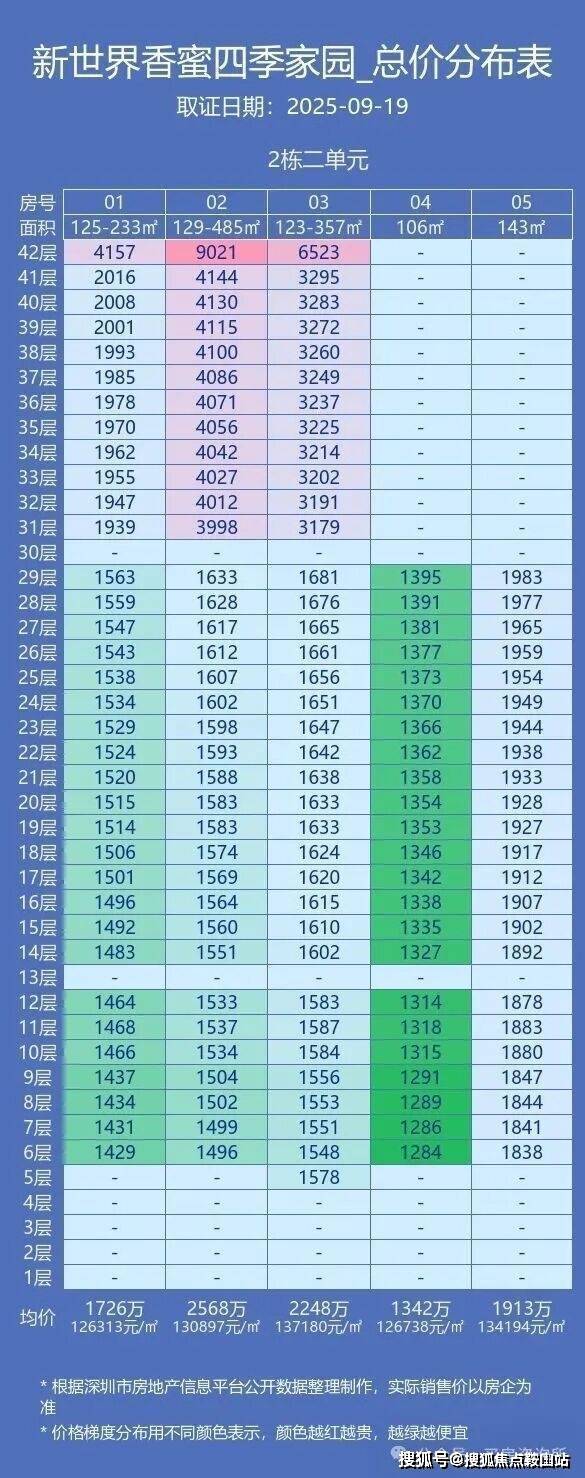 福田香蜜湖,新世界香蜜四季家园,9月19号已经取证!9月20日开始登记,登记截止9月26号下午18点!9月29日开盘!共923套房,面积有105-120-280㎡3-6房,还有2栋1单元的复式209-369㎡,2栋2单元243-491㎡,项目备案均价13万,开盘约98+98折,据了解开盘可能还会有额95折,目前96折后单价最低10.9万/㎡起,折后折后均价约12.6万/㎡!额外95折的话125㎡1303万起,单价10.4万起