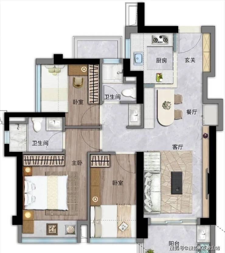 【约86㎡三房两厅两卫】
