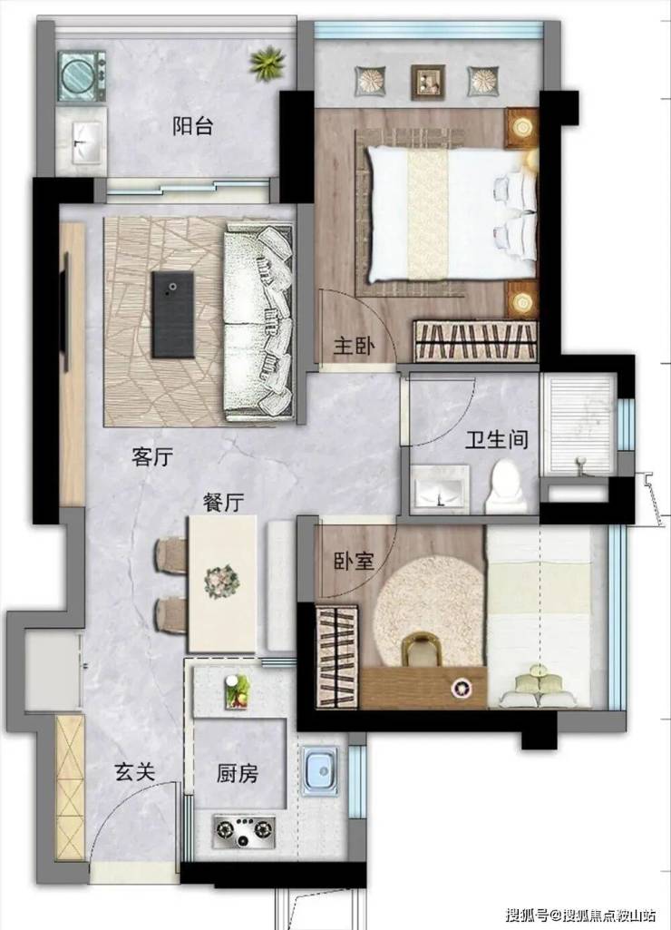 【约63㎡两房两厅一卫】
