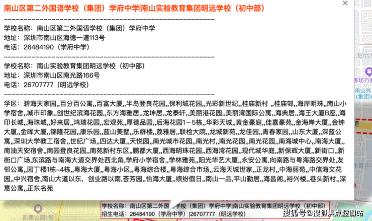 处南二外学府一小和南二外学府中学学区范围内,直线距离约900米还有深圳南山实验教育集团明远学校