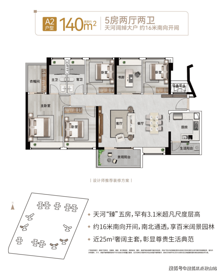 建面约140㎡臻五房,约16米南向大开间搭配南北双阳台,采光通风极佳。今年买,今年住,美好生活随即兑现。