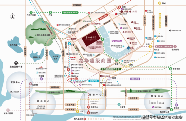 项目占位龙华超级商圈几何正芯,龙华商业中心城市更新北片区,傲踞天赋C位地块。