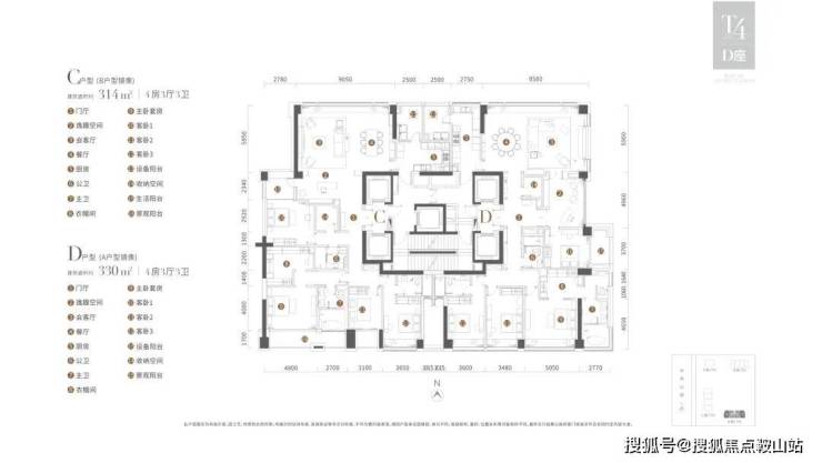 B/C户型:330m²四房三厅四卫,南北通透(卧室全南向)