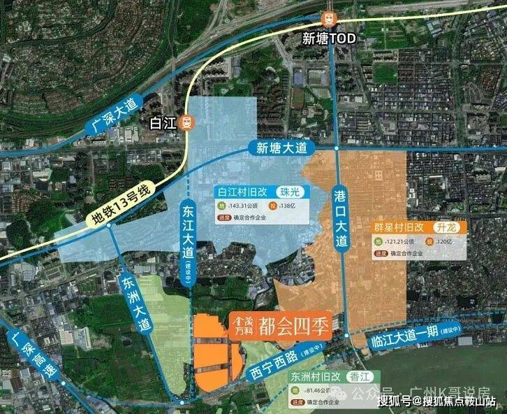 东江新城,占地约13.23平方公里,约2个珠江新城规模,金茂万科都会四季处于东江新城规划范围内。重点范围2.98平方公里(新塘环保工业园周边地区),规划将工业园和周边的村庄都纳入升级改造范围,引导环保工业园内企业升级改造,规划建设承载湾区高端科创职能的智慧枢纽,将打造以知识密集型、资本密集型经济为核心的广州第三CBD。