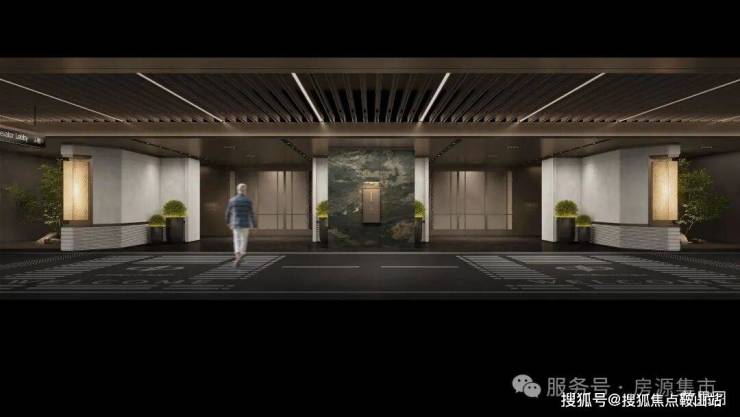 🔘星级车库:车库双大堂设计,大面积采用天然浅色石材,并于天然奢石加以点缀,光厅顶面采用金属构件,结合灯带,增加层次感,彰显项目高定品质。