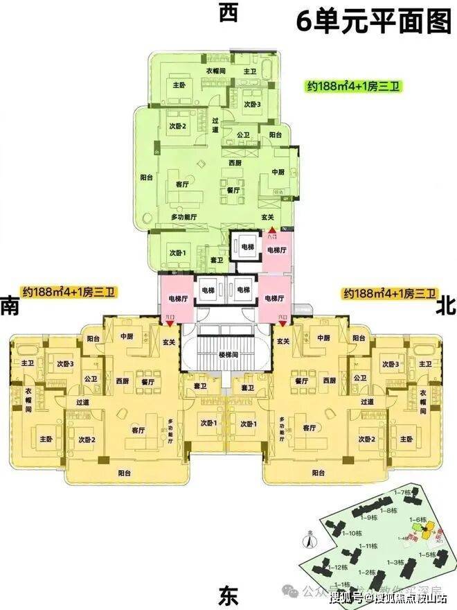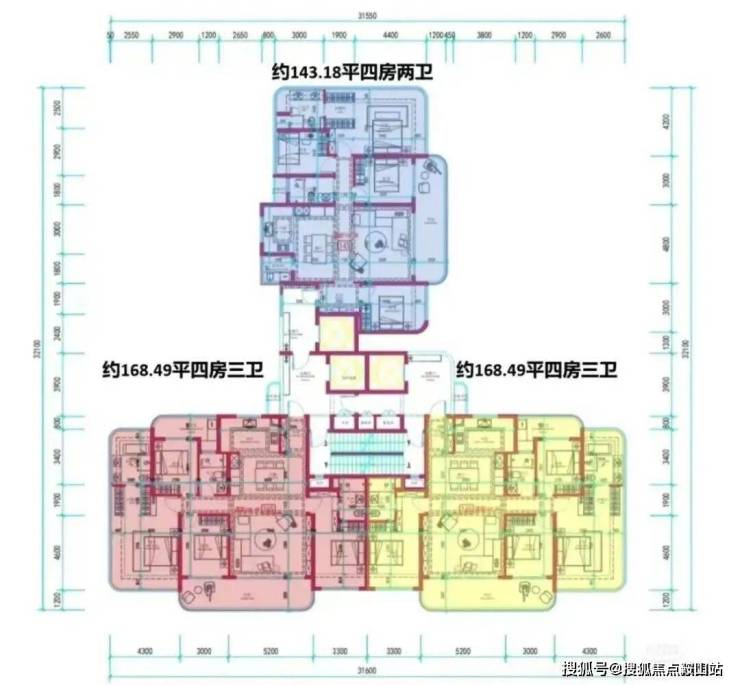 1、6、7、10、11、12单元则是采用3T3户,塔楼设计。约143-168-188㎡左右4房,也有部分看海单位,上车门槛更低。