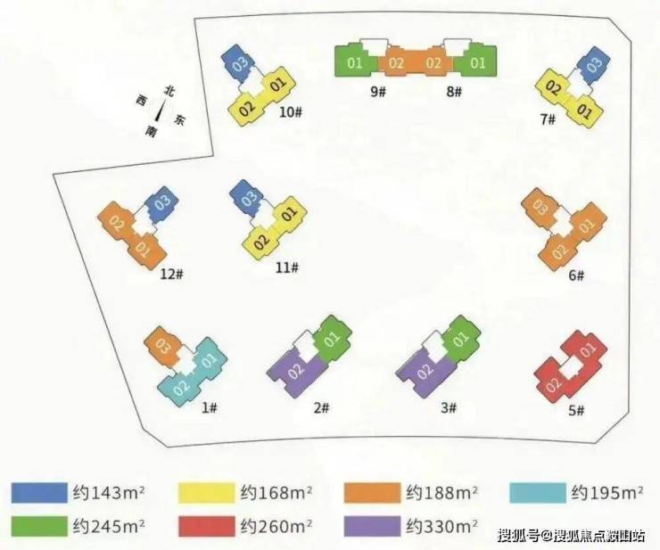 项目限高80m,楼栋采用点式分布,其中2、3、5、8、9单元,2T2户,板楼设计。位于中间位,避开道路噪音影响,打造约193-253-260-332㎡大平层。