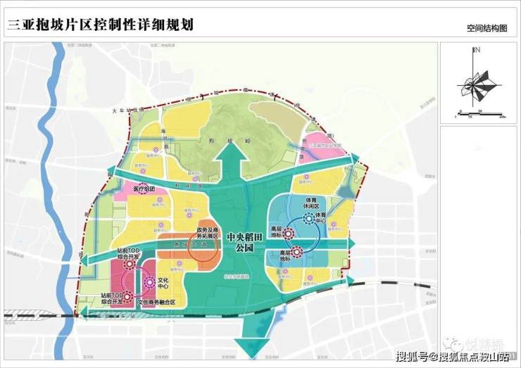 山海绿楔,城园相生。规划总体形成“一园、三区、多组团”的空间结构。