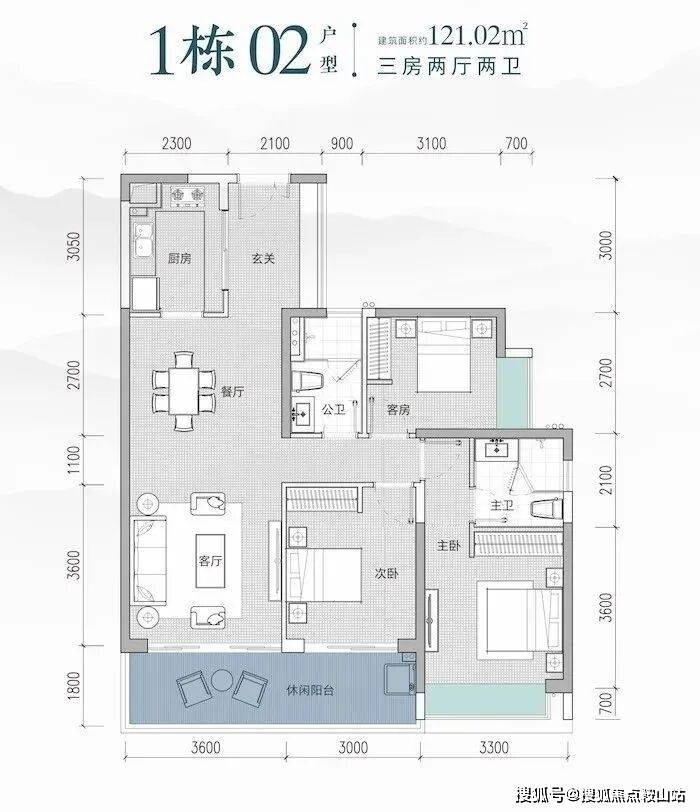 主推户型:117-121-133㎡三房两厅两卫-四房两厅两卫