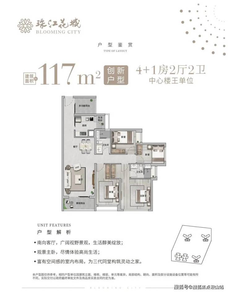 社区内将建4500㎡大型私享公交总站,为版块内最大的社区旗舰型交通配套,项目产品为约70-140㎡“2+1至5房”夺金户型,超87%实用率,比同面积产品多一个房间。