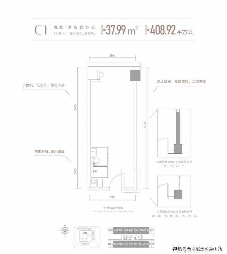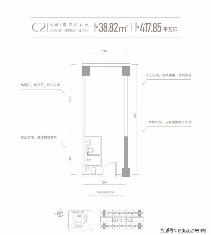 首推5栋建筑面积约38-39㎡高定资产,约3.9米层高小面积高实用,城芯优质资产。