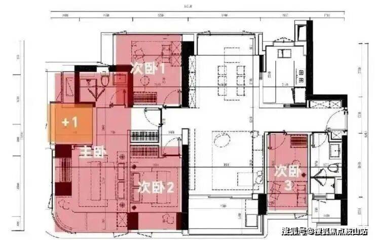 单元楼近1:1梯户比,分区设置电梯厅,类似于华润城润玺,北区大户型双电梯独立电梯厅入户,南区3梯4户
