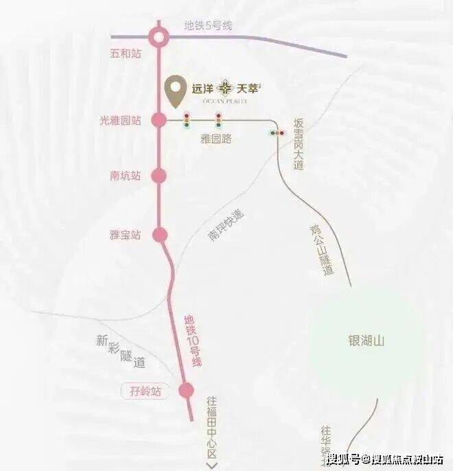 地铁配套:远洋天萃家门口就是10号地铁线“光雅园站”B出口,小区地下室直通地铁站,1站到五和枢纽站可换乘5号地铁线/深大城际,3站可到龙华深圳北站,3站到福田、4站到南山。